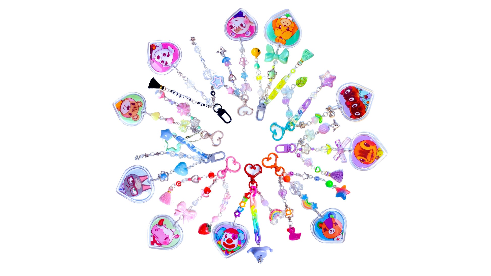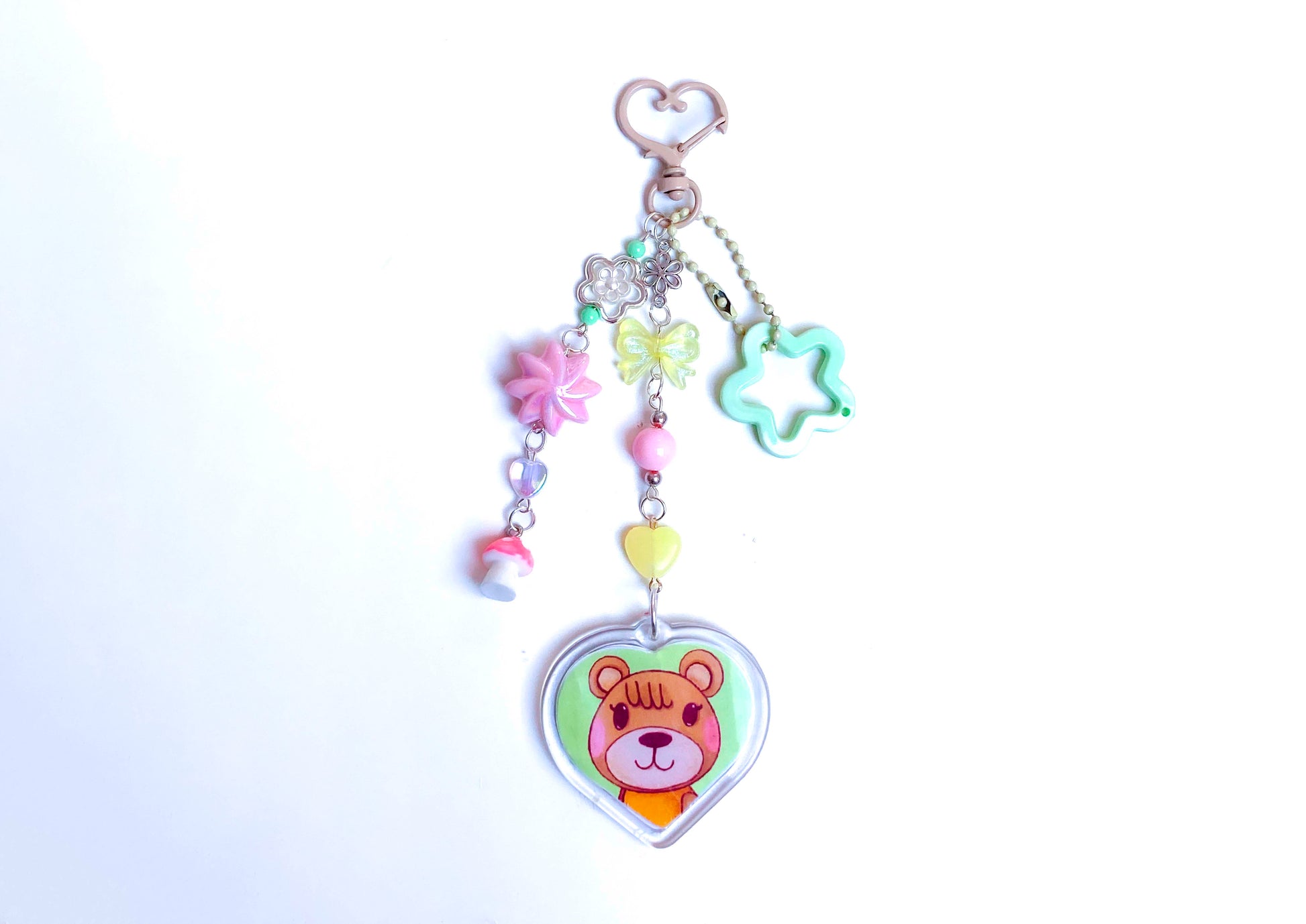 Each keyring is totally unique- no two will ever be the same! I will carefully choose fun colour combination that match the characterโs vibe. That means you get a one-of-a-kind piece every time!