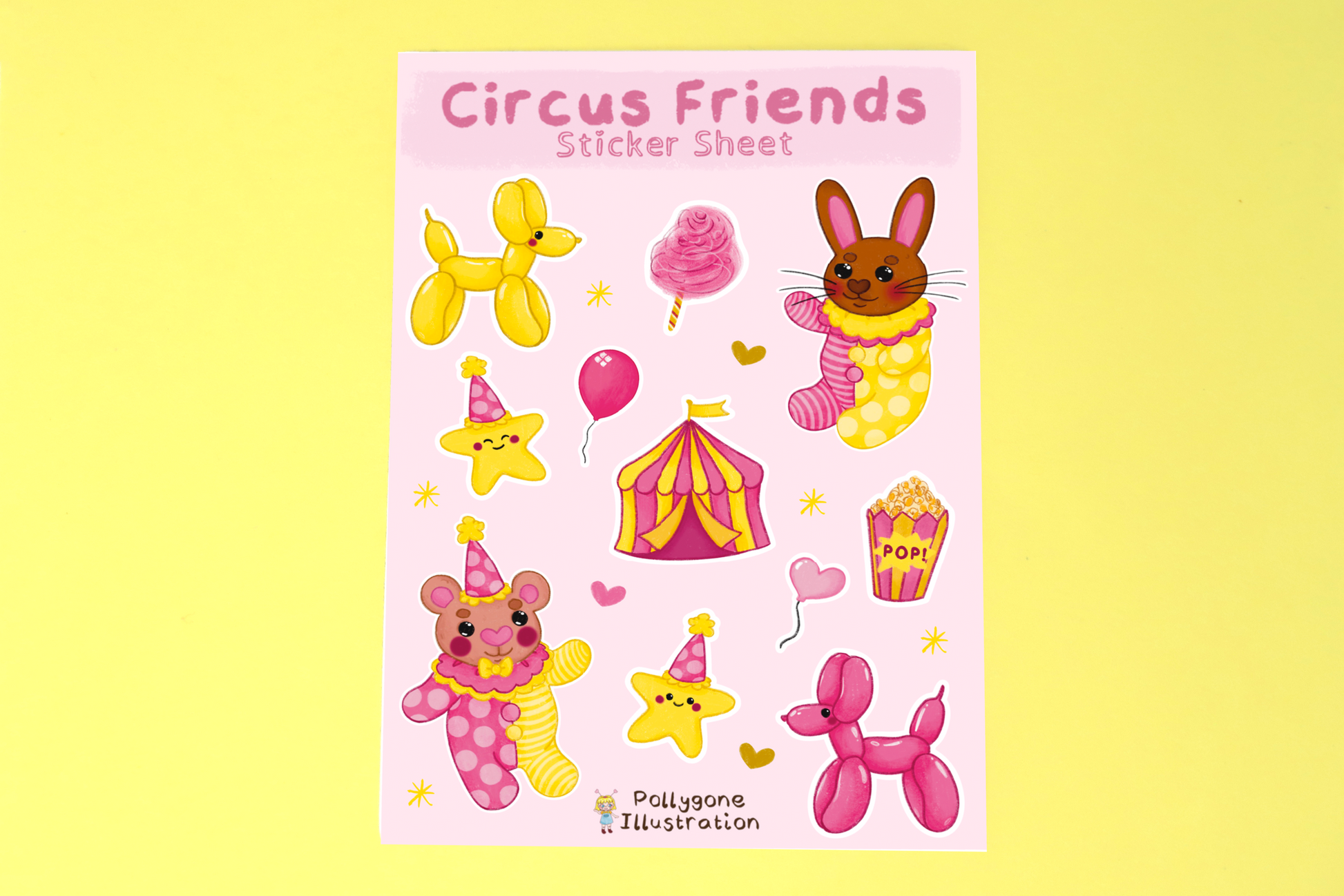 The sticker sheet is 12.5cm x 8.7cm with 11 cute stickers! Printed on glossy sticker paper