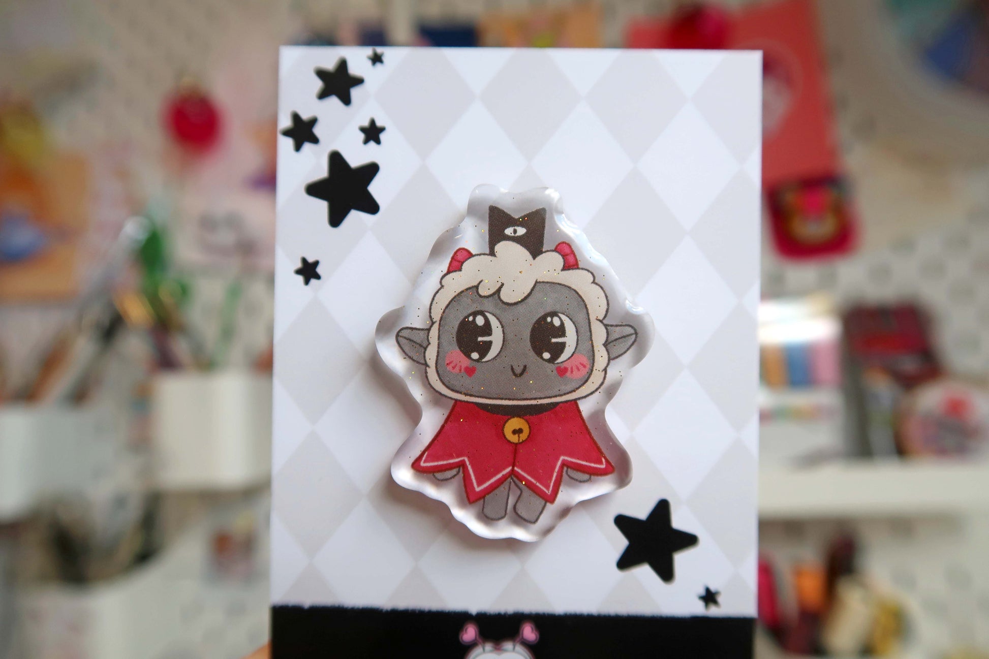 Treat yourself to an ADORABLE acrylic pin or spoil your friends! This ‘Cult of the Lamb’ pin is so cute & is sure to brighten up your day.