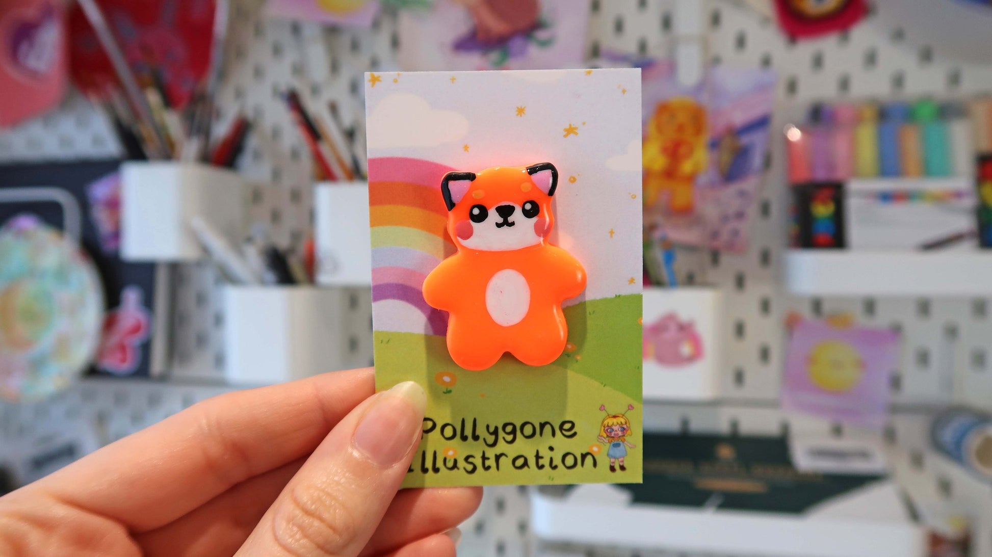 Made with clay, resin and love, this badge will look adorable on your bag or coat!
