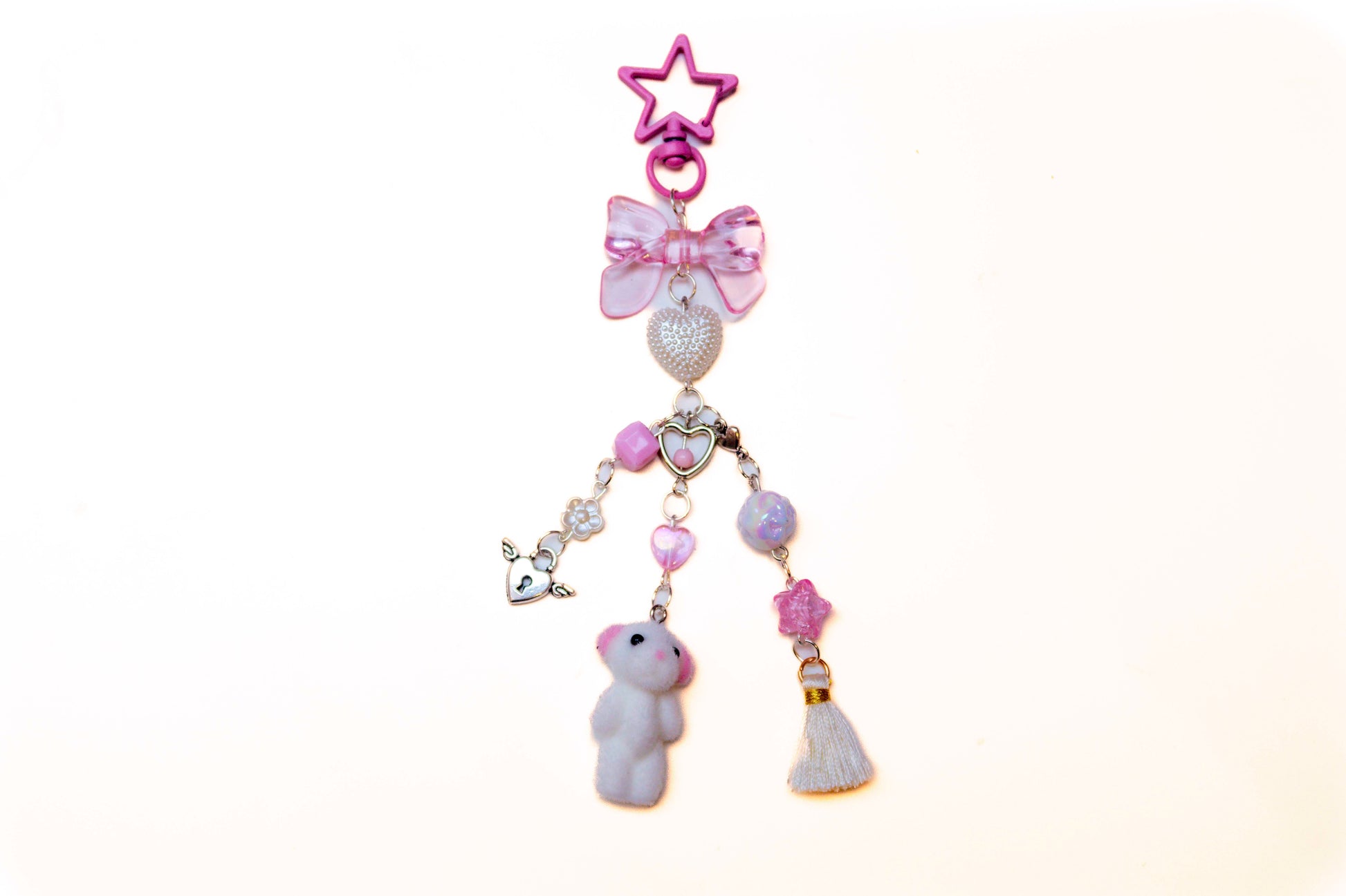 Add a touch of cuteness & charm to your keys, bag, or backpack with this adorable fuzzy dog beaded keyring! Handmade with love, this keyring features charms and beads in pink, along with carefully selected accent beads to bring your little critter to life. 🥰✨