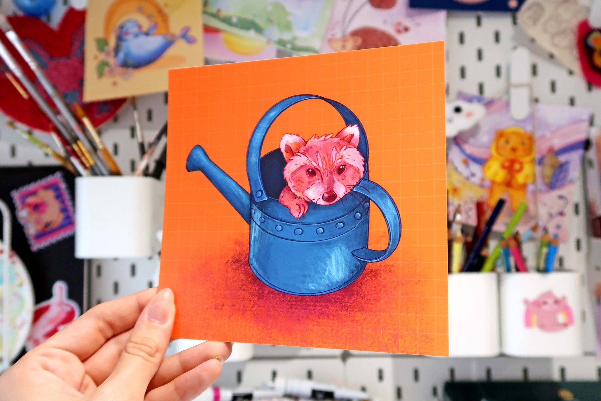 Add some new art to your wall with our raccoon mini print. This adorable print features a digitally drawn illustration printed on 300gsm gloss paper.