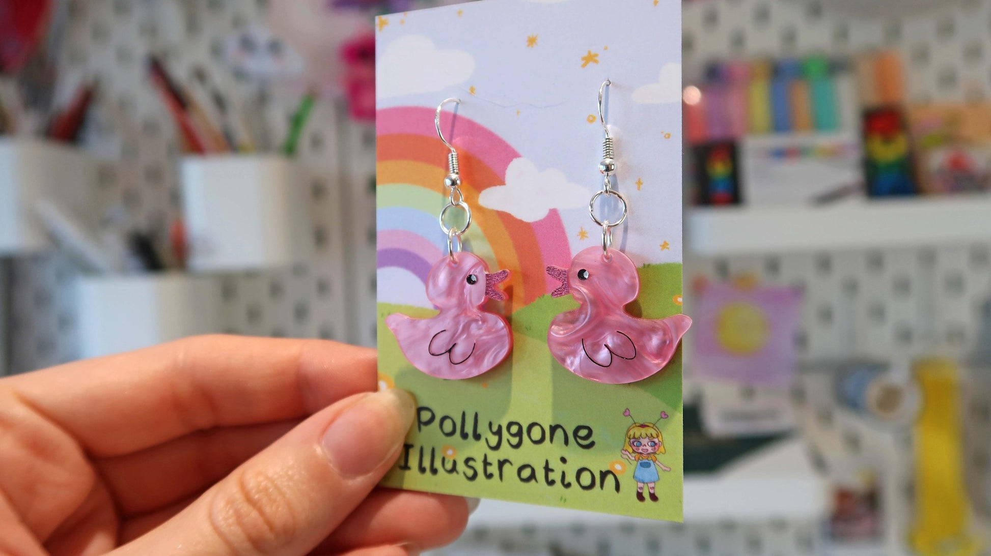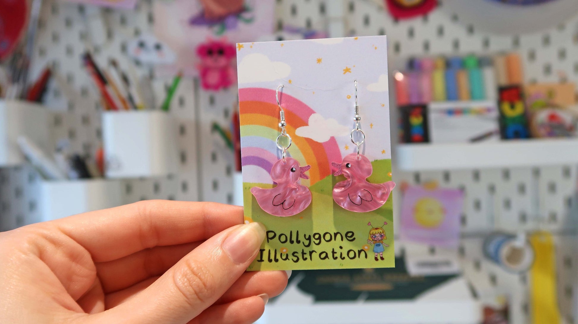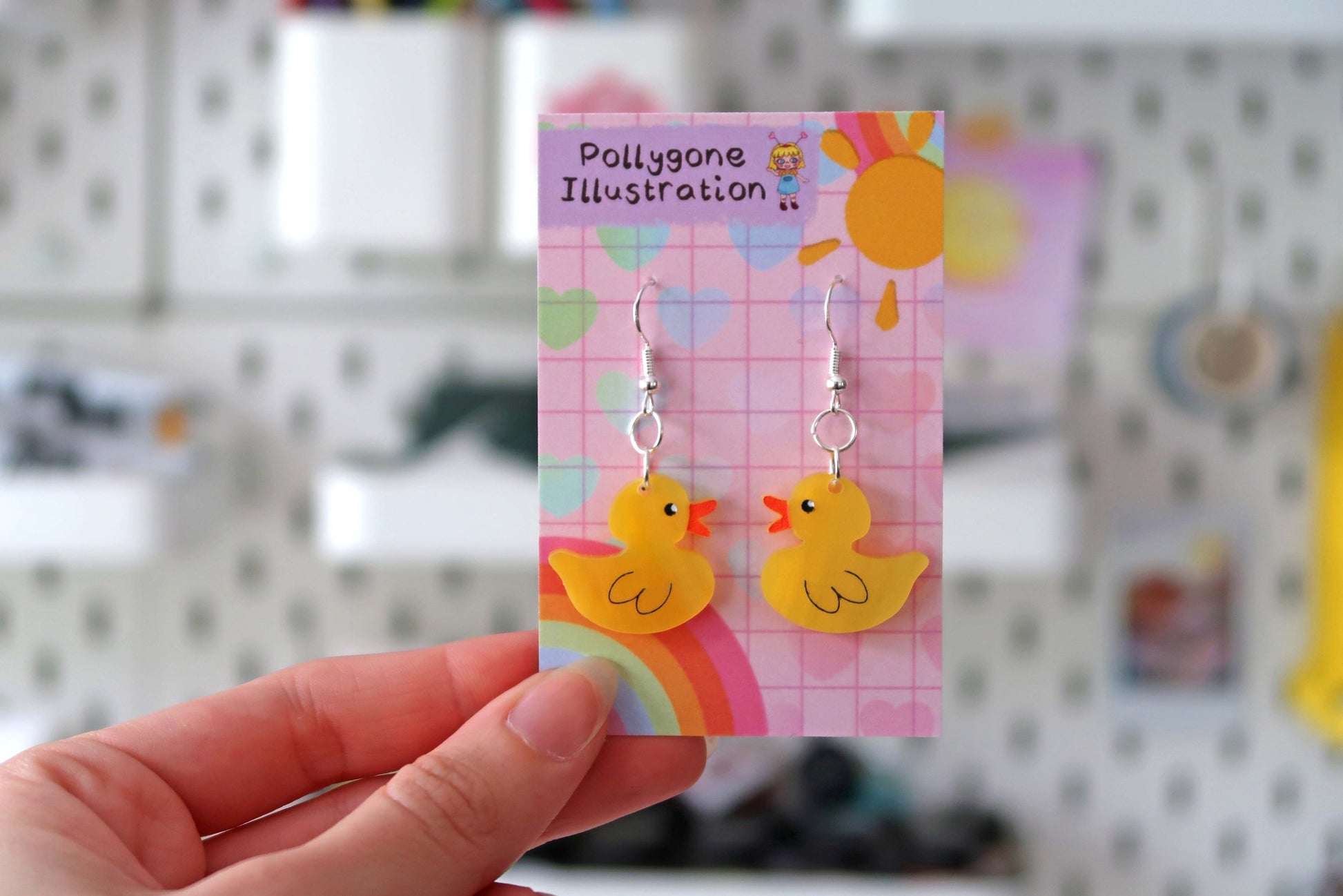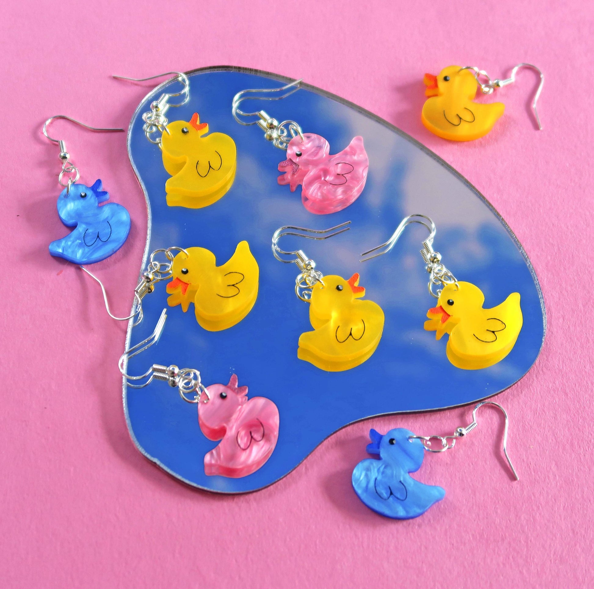 Cute dangly rubber duck earrings! Perfect to kawaii-ify your look. Pick from different colours.