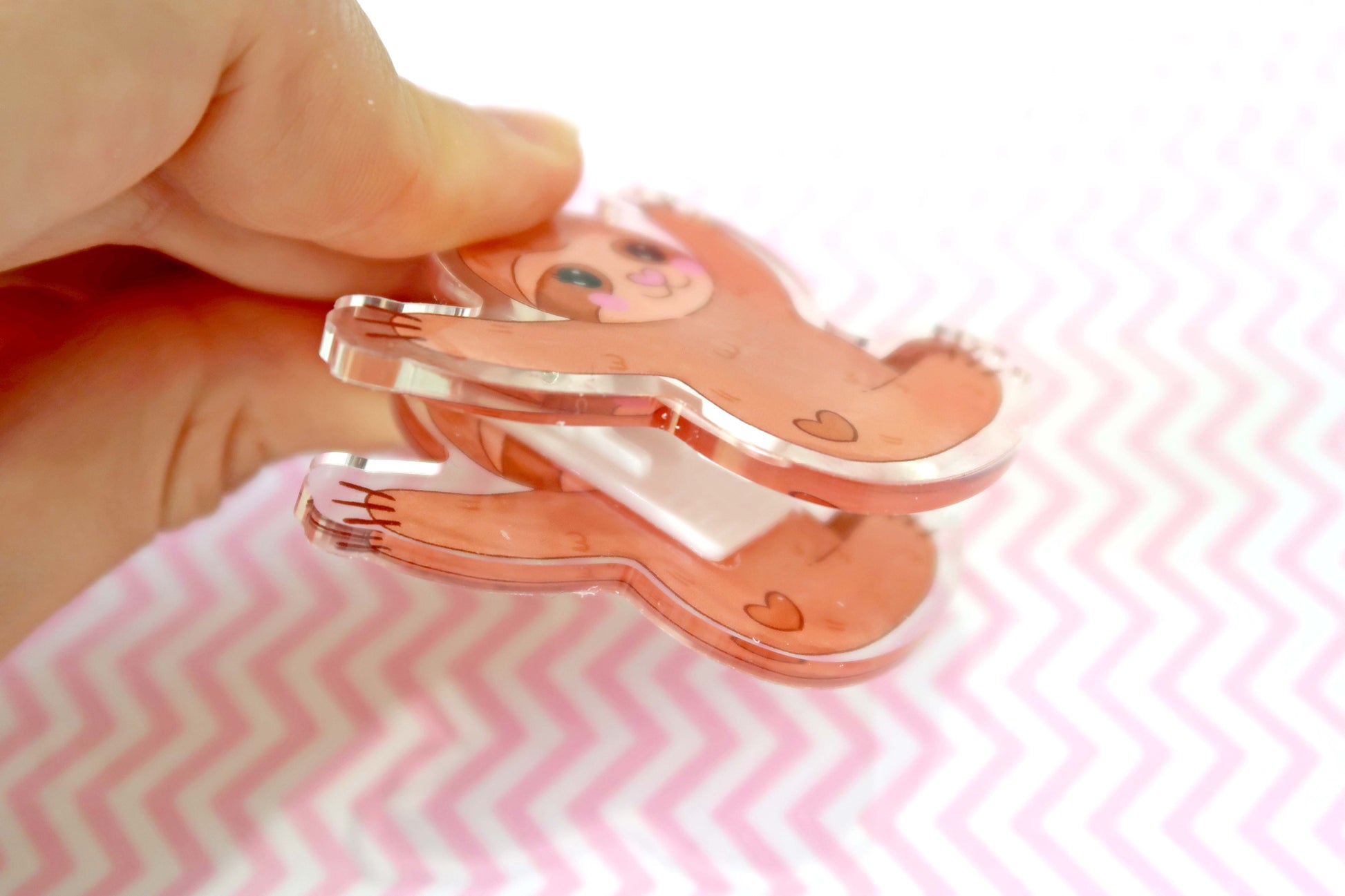 This Simon Sloth binder clip measures to 2 inches and is made from acrylic.