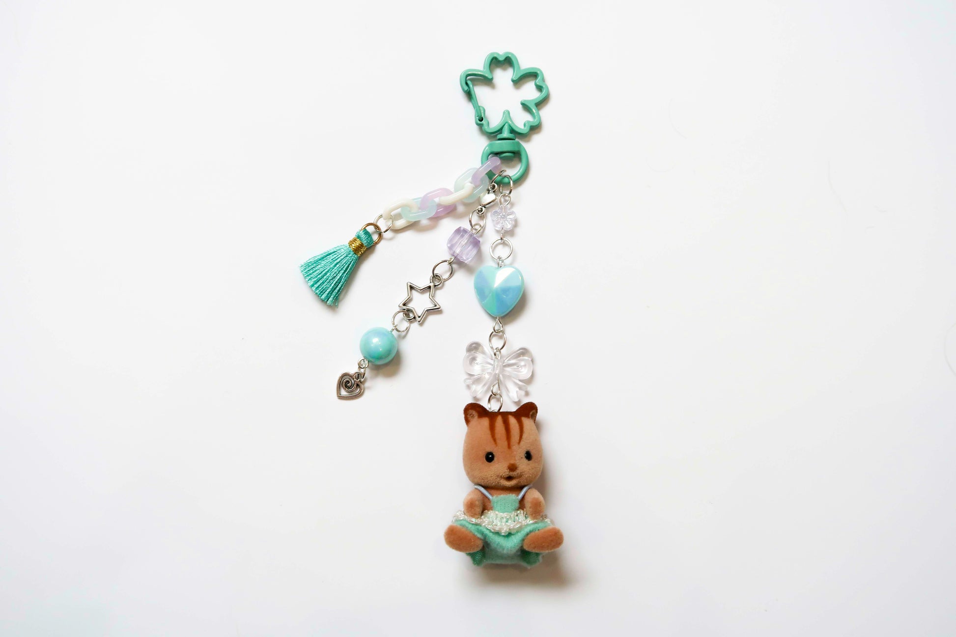 Add a touch of woodland whimsy to your keys with this handmade Sylvanian Families baby Keyring. Featuring charming beads and delightful charms, this playful accessory brings a mini forest adventure wherever you go. Perfect for fans of Sylvanian Families or anyone who loves cute, crafted details on the move.