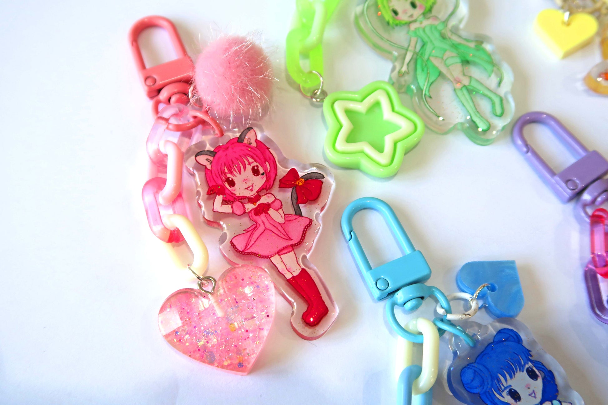 Choose your favourite Mew Mew!. The 2 inch charm is attached to a split ring keyring making it a great accessory to your keys, fave bag or even your Nintendo Switch case. You can choose which girl you would like, but one will be sent at random and you cannot choose the attached charms.